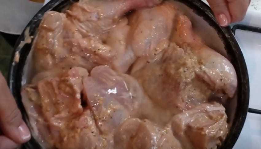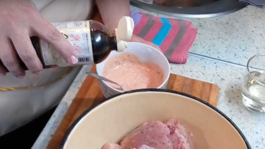 Как потушить курицу, маринованную в кетчупе и горчице, с подливкой из майонеза?