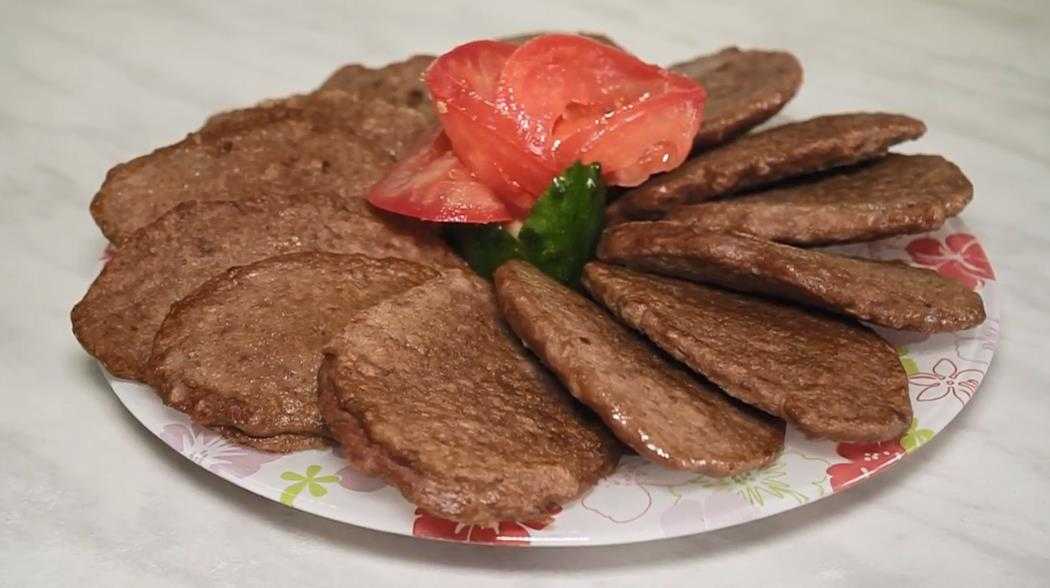 5. Обжаривайте оладьи на среднем огне 2,5 минуты. Затем переверните их и обжаривайте еще 2,5 минуты. Готовые печеночные оладьи переложите на блюдо и жарьте новую порцию. Таким образом продолжайте, пока не закончится весь фарш. Затем подавайте их к столу.