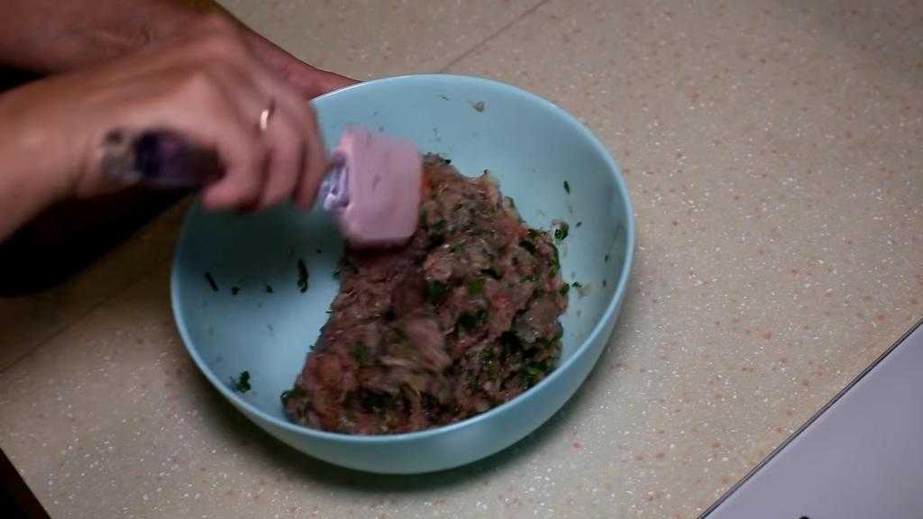 Для жарки ленивых чебуреков по рецепту моей подруги сначала подготовьте собственно сам фарш. В России для приготовления кутабов обычно используют смешанный фарш из говядины и свинины. Но можно, конечно же, также взять, к примеру, вариант из свинины и курицы.