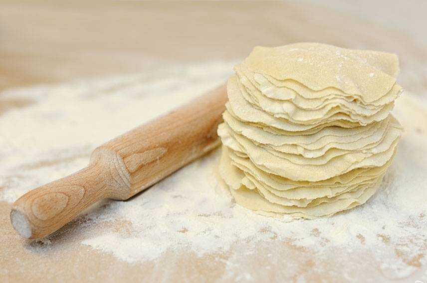 - Замесите тесто из муки, воды и дрожжей. Дайте ему один раз подойти. И можно приступать к разделыванию.