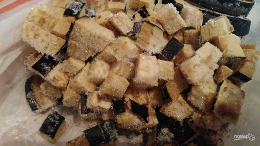 1. Хотя сейчас выращиваются сорта баклажан без горечи, все же стоит нарезать этих красавцев сантиметровыми брусками и залить прохладной слегка подсоленной водой на 10-15 минут.