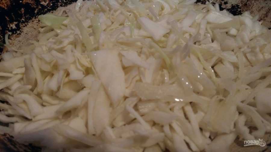 Перемешиваем и минуты три обжариваем на среднем огне.