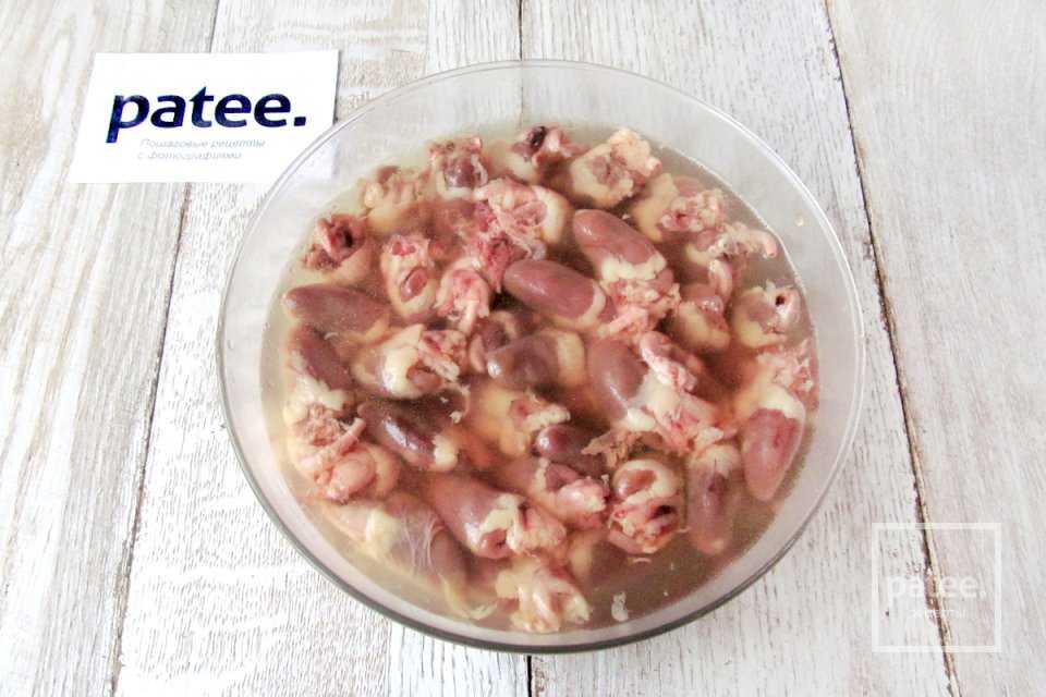 Сердечки промываем, по желанию удаляем лишний жир и пленки.
