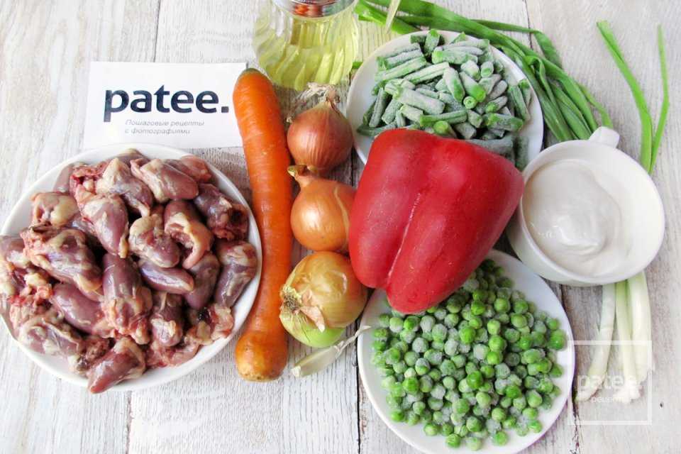 Рецепт: Овощное рагу — овощи с куриными сердечками — вкуснее не бывает