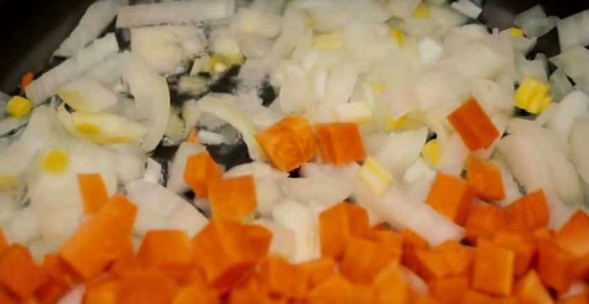 - Добавьте морковь, готовьте, пока она не станет мягкой. Помешивайте в процессе.