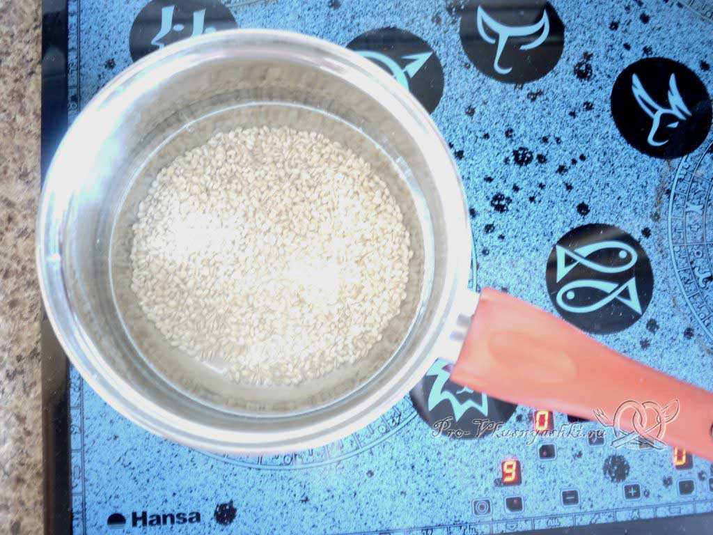 Тем временем перловка сварилась (впитала в себя практически всю жидкость), убираем ее с плиты и снова промываем под холодной водой.