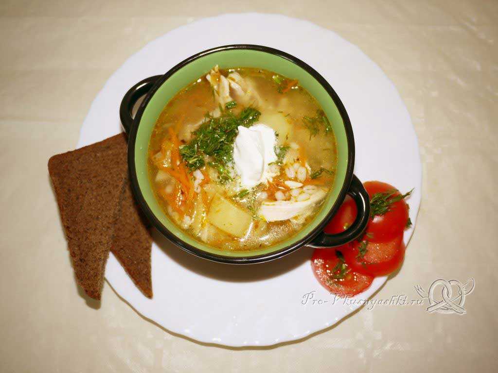 Я крупу всегда предварительно отвариваю отдельно. Если сразу положить ее в суп, то позже бульон приобретет некрасивый серо-синюшный оттенок. А отдельно отваренная крупа будет в супе красиво смотреться и оставит бульон прозрачным.
