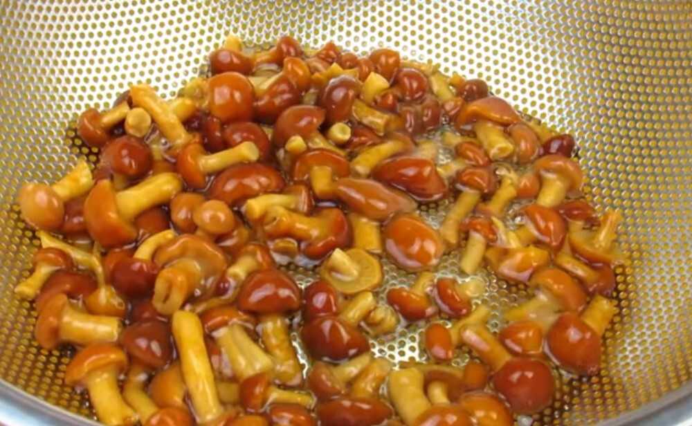 Маринованные опята отбрасываем на дуршлаг, чтобы стекла вся лишняя жидкость.