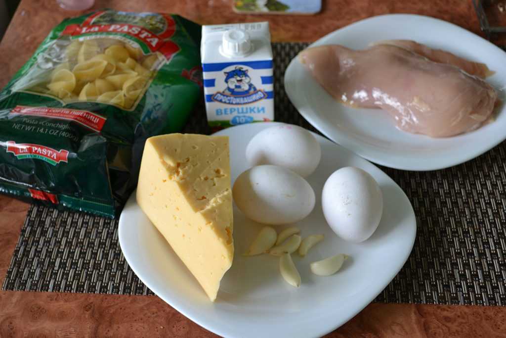 Для приготовления соуса Карбонара нам понадобятся следующие продукты: сливки, твердый сыр, яичные желтки, куриное филе, оливковое масло и чеснок. А для гарнира я использую макароны. |