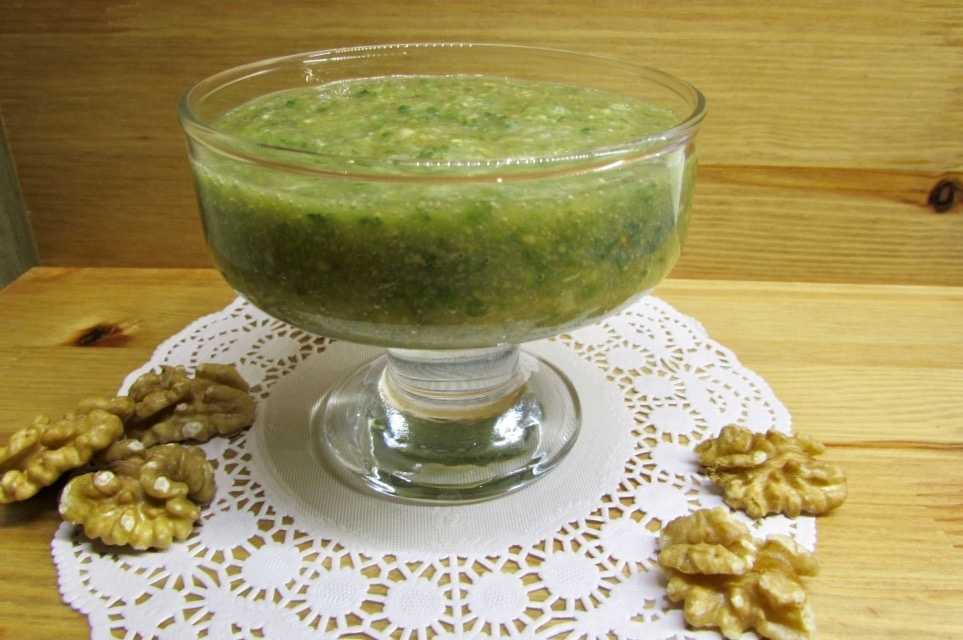 Еще один вариант джема – к прокрученной ягоде фейхоа добавить лимон и грецкие орехи.