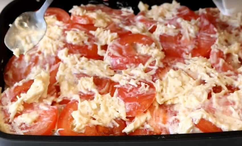Курица с сыром и помидорами в духовке на противне с майонезом