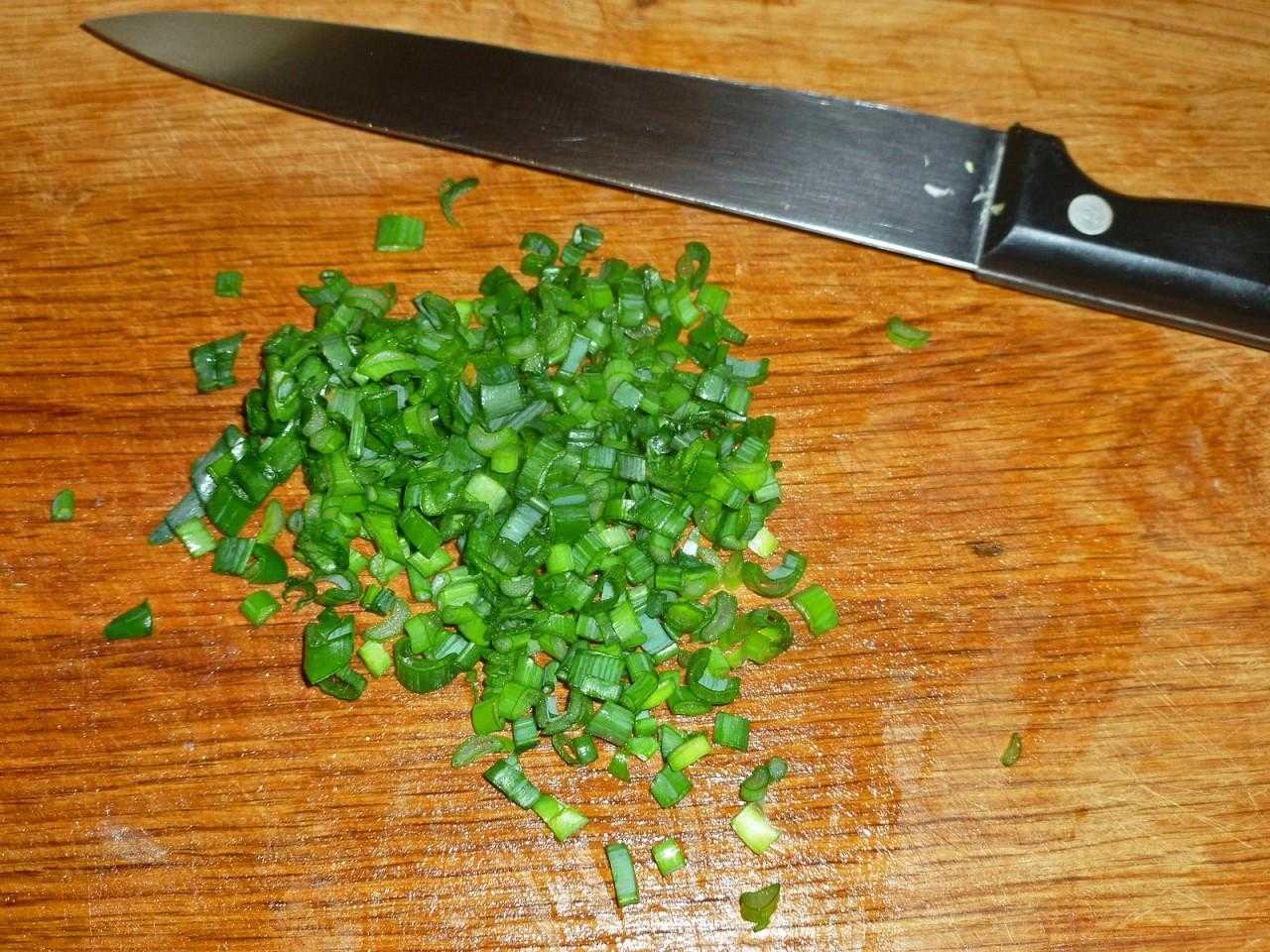 Мелко нарезаем зеленый лук.