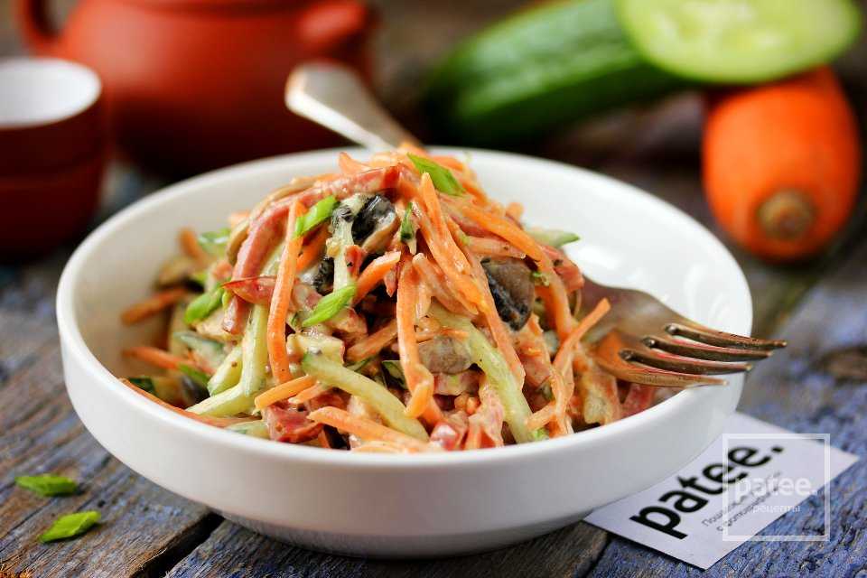 Острый салат «Затейница» из моркови с колбасой и чесноком