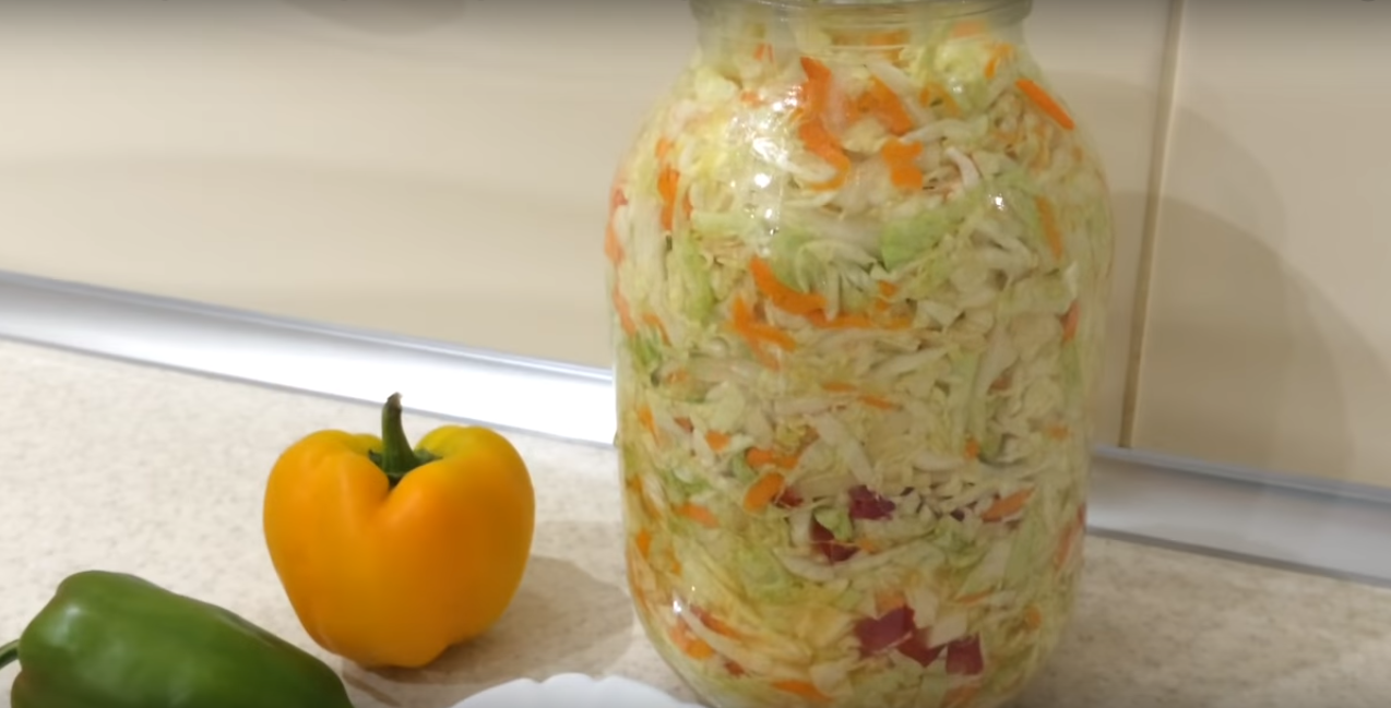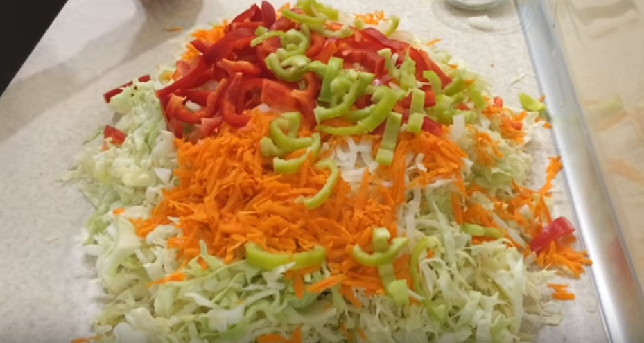 Салат из капусты с болгарским перцем, морковью и луком быстрого приготовления